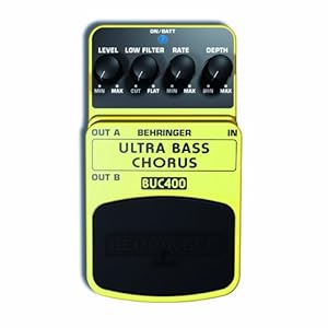 I recently purchased the Behringer BUC400 Ultra Chorus pedal. I was skeptical because of the price. I'm a working musician,and don t like a lot of effects on my bass because they tend to muddy up the tone and take away the "punch",but this little pedal adds the chorus effect I occasionally want,yet maintain the integrity of my bass tone. I would recommend this pedal to anyone not wanting to give an arm and leg for it,but want a decent chorus effect. So far after a few weeks, it s held up on the road etc. I run AC to it,because I'm not a big fan of batteries,so I don t really know how long the batteries would last. All in all,a lot of bang for the buck !